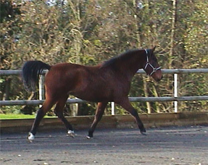 He does have a problem! When I got him home on the day I purchased him I put Medraar in a stable and he immediately began to crib bite and wind suck. The solution is he lives out in a nice warm rug in winter and a field shelter and the habit stopped. He's a lovely chunky lad and like all my Bahrainis he is kind and affectionate. I don't want to sell him in case he gets passed from one owner to another and falls into bad hands as is often the way with horses that have a problem. I think he would make an excellent Endurance horse being very laid back or if anyone wanted to have a go at Arabian Racing he is bred to win.