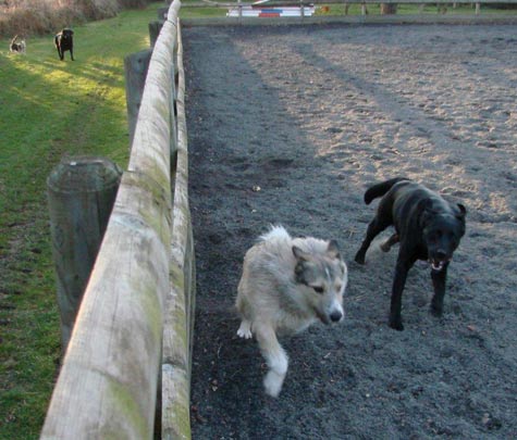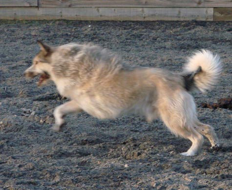 If I had stayed clear of the kennels all would have been well but fate had its own plans and just returning from with his volunteer 'dog walker' was a scruffy wolf coloured pup hopping along dragging a very badly twisted leg, but managing reasonably well with this disability. He had been picked up off the roadside and no one knew his history or how he had been so badly hurt. He stole my heart and when the puppy walker explained that with his disability they doubted they would ever find him a home I heard myself saying "I'll have him."