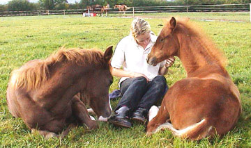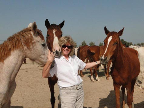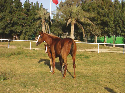 Jenny at the Royal Stud of Bahrain March 2010 visiting Kray Asila's fillies the (grey and chestnut)